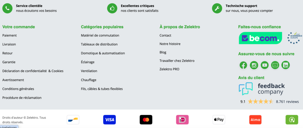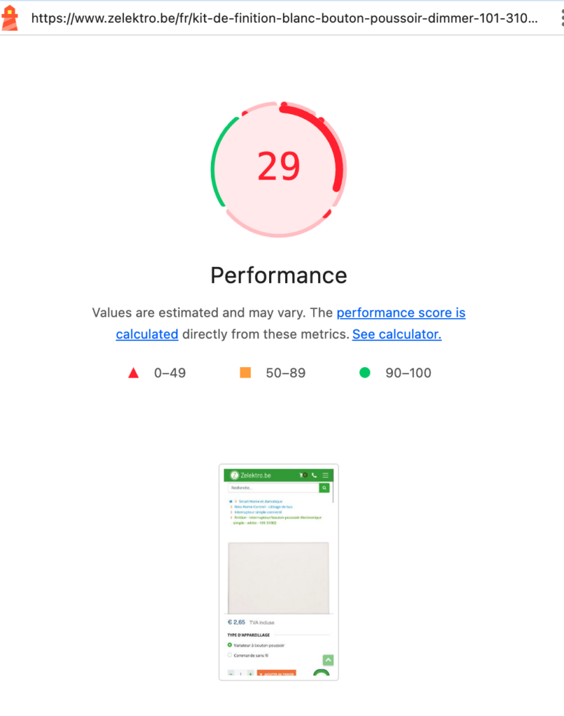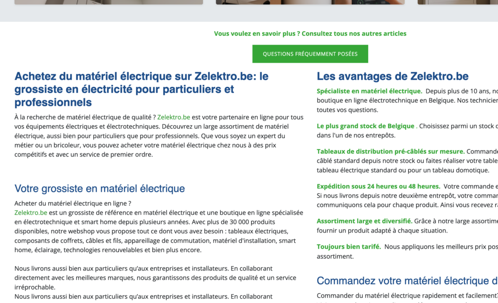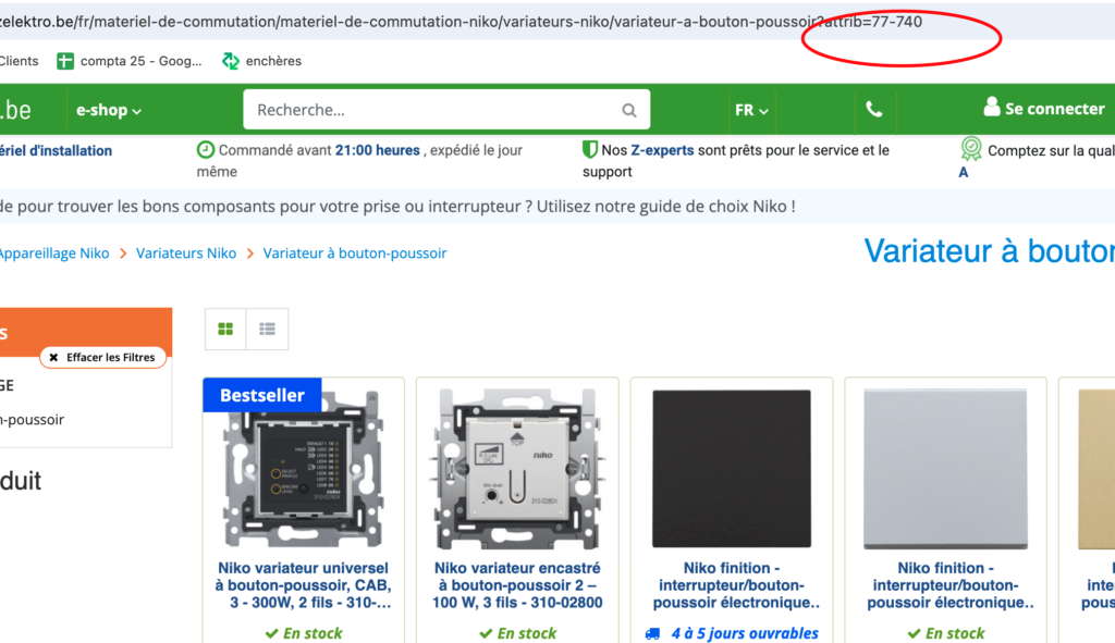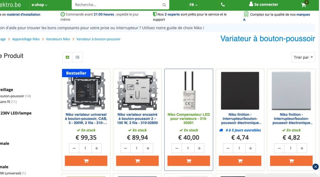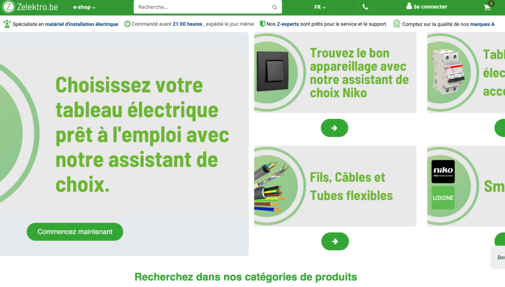 Je prends un site belge « Zelektro », qui est déjà pas mal optimisé. C’est une société néerlandophone à la base, donc on va tester la partie en Français pour voir si l’internationnalisation fonctionne bien.