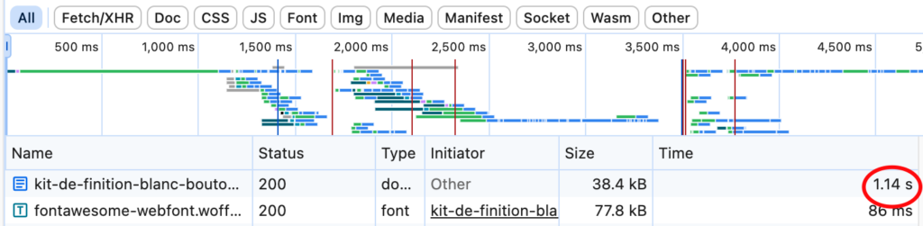 Plus de 1 seconde pour servir la page principal, sans les dépendances.
