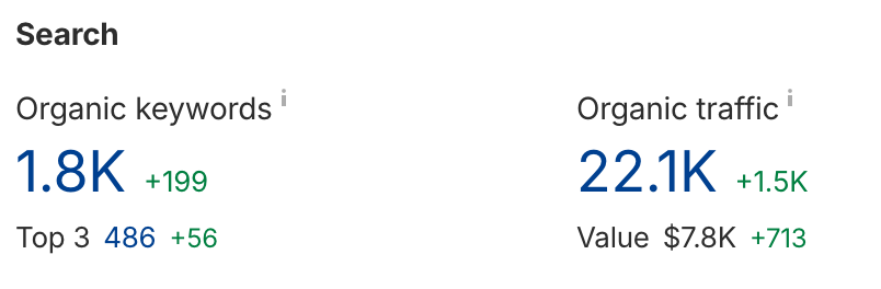 • 62 mots-clés se positionnent en TOP 10 dans Google en Français.